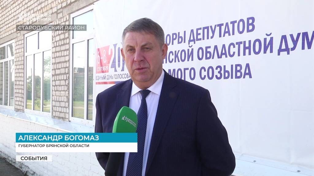 "> 224 избирательные кампании проходят в Брянской области. Стартовало трехдневное голосование. 6 сентября одним из первых на участке для волеизъявления на своей малой Родине в Меленске Стародубского района бюллетени заполнил и опустил в ящик губернатор Брянской области Александр Богомаз. Выборы для главы региона, как и для многих его земляков, важная семейная традиция, поэтому на участок он пришел с сыном Михаилом.