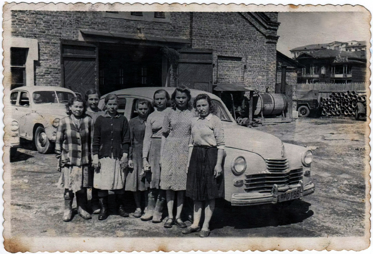 Рассмотрим снимок второй половины 1950-х, который был сделан в самом центре Вологды. Немногие данное место смогут опознать, а меж тем это улица Батюшкова и женщины стоят у гаража Обкома КПСС.