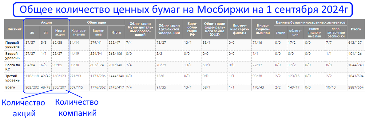 Сколько всего акций торгуется на нашем рынке?