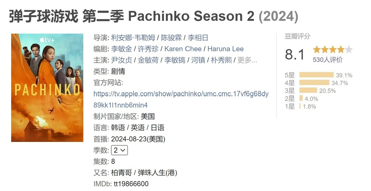 Сериал Apple TV+ "Пачинко2" (Pachinko Season 2) столкнулся с серьезной проблемой незаконного просмотра в Китае. 6 сентября профессор Сон Кён Дэк из Университета Сонгшин (Sungshin Women's University) сообщил через социальные сети, что "Пачинко2" стала объектом обсуждения из-за её нелегального просмотра в Китае. На платформе "Доубан" (Douban) уже появилась страница с отзывами на "Пачинко2". К 11 часам утра этого дня было зарегистрировано 530 оценок и 96 отзывов. Профессор Сон отметил, что подобные проблемы возникали и при выходе первой части "Пачинко" (Pachinko), и что незаконный просмотр контента стал распространенной проблемой. Профессор Сон также раскритиковал двойные стандарты китайского правительства. В частности, Китай принял меры по защите интеллектуальной собственности олимпийского талисмана "Бинь Дунь Дунь" (Bing Dwen Dwen) во время Олимпийских игр в Пекине. Однако, по мнению профессора, соответствующих действий для борьбы с незаконным распространением корейского контента принят