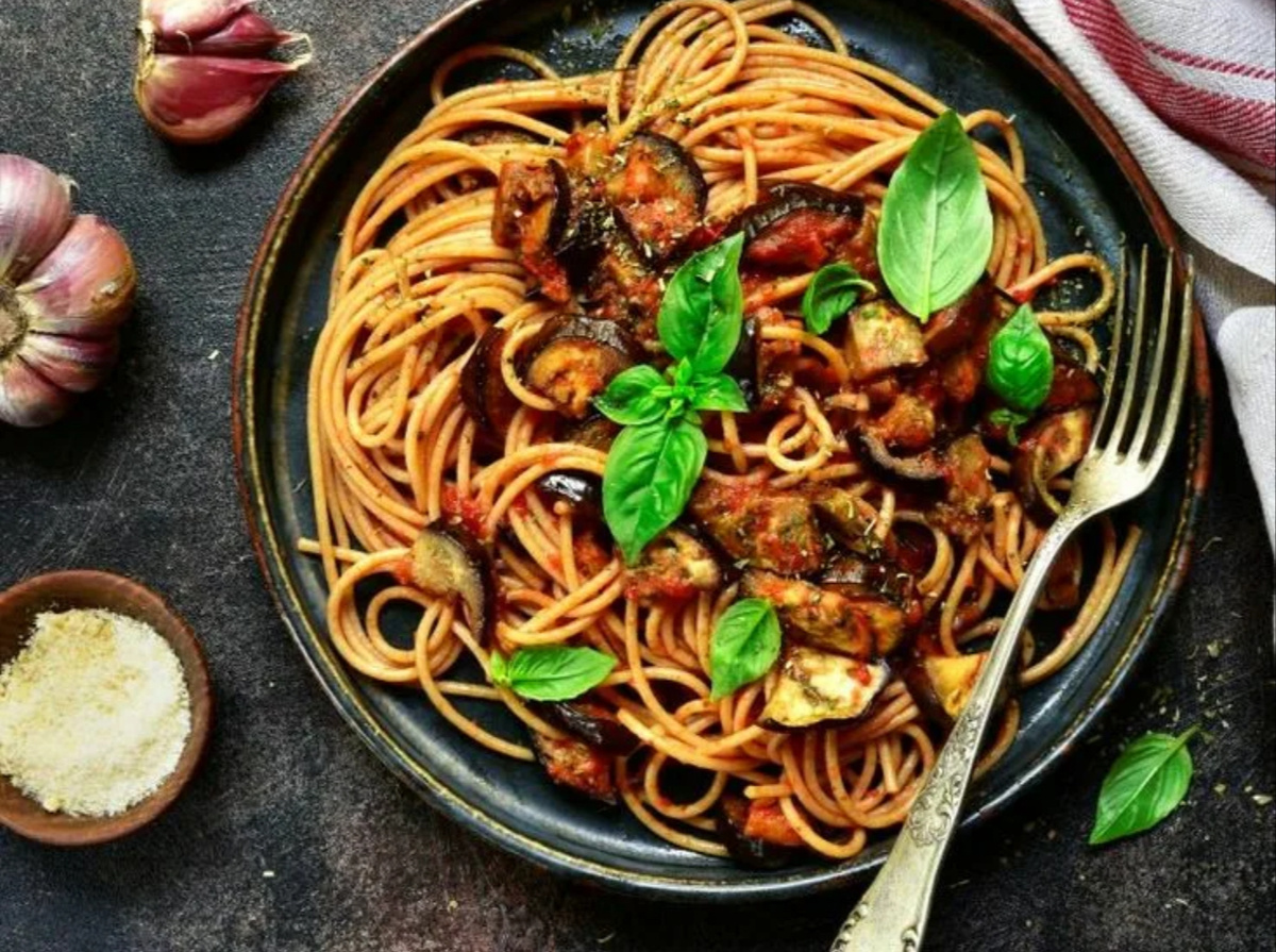 Рецепт Сицилийской пасты с запеченными помидорами и баклажанами