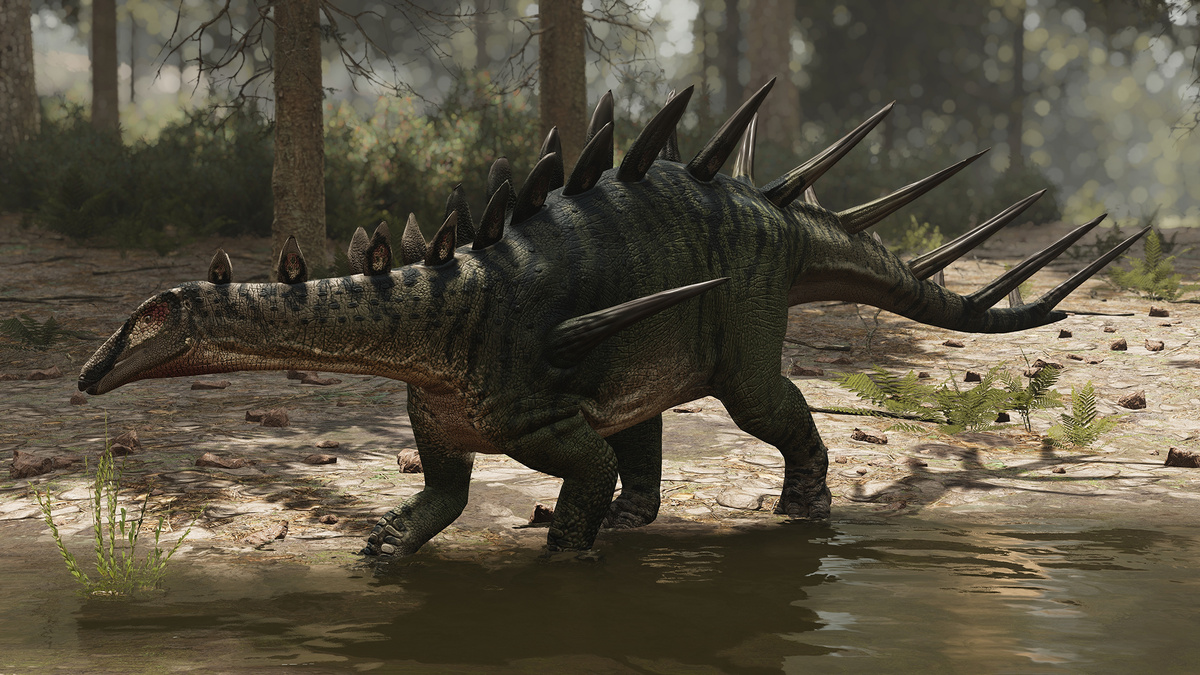 Кентрозавр (Kentrosaurus) — это род динозавров из семейства стегозаврид (Stegosauridae), живший в конце юрского периода, около 150 миллионов лет назад. Он был средних размеров по сравнению с другими стегозавридами и обладал характерными шипами и пластинами на спине и хвосте, которые, вероятно, использовались для защиты от хищников. Кентрозавр был впервые описан в 1915 году немецким палеонтологом Эдвином Хеннингом на основе ископаемых останков, найденных в Восточной Африке. Эти находки включали почти полный скелет, что дало ученым возможность детально изучить строение и особенности этого динозавра. Кентрозавр, вероятно, вел медлительный образ жизни, как и многие другие травоядные динозавры его времени. Он мог использовать свои шипы для защиты от хищников, но его основной стратегией было медленное передвижение и питание низкорослой растительностью. Также есть предположения, что эти динозавры жили стадами, что давало им дополнительную защиту от хищников. Кентрозавр представляет интерес дл