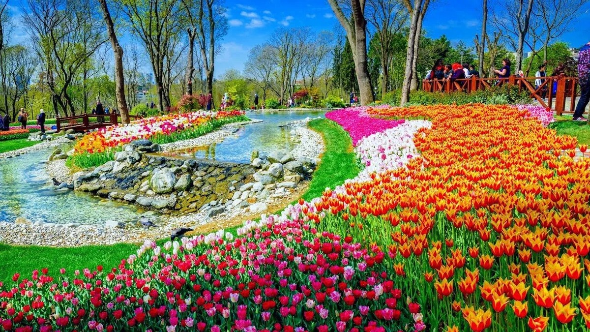В Стамбуле много интересных мест, посещение которых оставит яркие воспоминания на долгие годы. Сюда можно приезжать в любое время года. Весной город имеет особое очарование, так как в апреле тут проходит Фестиваль тюльпанов. Их можно увидеть в разных уголках Стамбула. Но больше всего их, конечно, в парке Эмирган, где, собственно, и проходит Фестиваль тюльпанов. Парк огромный – 47 га. И кругом тюльпаны: они самых разных цветов и оттенков. Их тысячи и они разных сортов! Клумбы – настоящее произведение ландшафтного искусства. Зрелище в этом оазисе посреди мегаполиса просто невероятное! Кстати, в парке также работает Музей тюльпанов. Его можно посетить с экскурсией и узнать много интересного о том, как эти цветы начали выращивать в Турции. Помимо красоты и благоухания цветов есть и другая фишка у ярусного парка Эмирган. Он расположен на возвышенности, с которой открывается шикарный вид на пролив Босфор. Неудивительно, что в этом парке очень любят гулять местные жители. Сюда приходят семьям