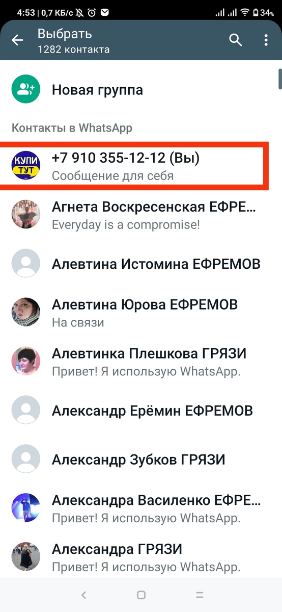 Нажимаете значок "начать новый диалог" (обычно внизу справа при заходе в WhatsApp), находите себя, ватсап здесь так и пишет, "сообщение для себя", и отправляете любое сообщение, например смайлик или точку. Это нужно сделать только один раз (см.фото ниже) Далее идете в нужный чат, зажимаете сообщение, которое хотите сохранить, после того как оно выделилось, вверху жмёте на двойную стрелочку (см.фото ниже) Далее вам предлагают выбрать, куда хотите отправить, вы выбираете себя и нажимаете стрелочку отправить. В списке чатов вы легко найдете диалог с собой и там будут все сохраненные вами сообщения. Их не видит никто кроме вас. 🔶🔷🔶🔷🔶 🛍️ Как сделать заказ смотрите здесь ⬇️ https://dzen.ru/a/ZstLnqAz2gQwf0OC ⚠ Ещё больше товаров и эксклюзивные предложения в наших чатах: Telegram (жмите на ссылку и отправляйте заявку) ⬇ https://t.me/kupitut48 WhatsApp (жмите на ссылку и отправляйте заявку) ⬇ https://chat.whatsapp.com/JaDNiuVFkXCFrRo06DY1aj ❓Задать нам вопрос или написать з