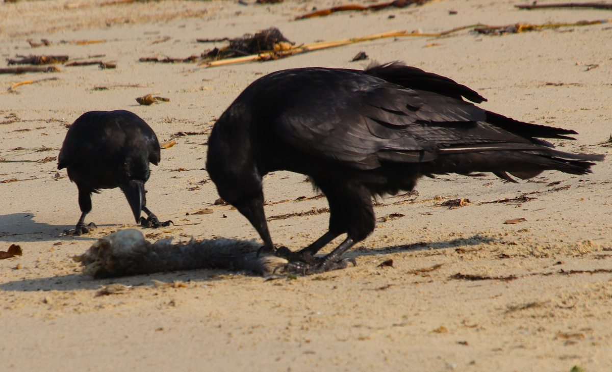 Вообще, вороны - молодцы! Они санитары нашего пляжа, съедают выброшенную на берег рыбу, кальмаров и крабов.