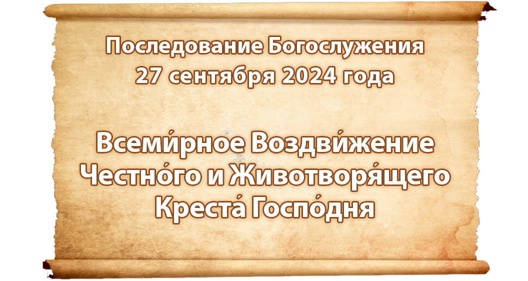 По ссылке на страницу последования богослужения можно скачать в разных форматах службу на 27 сентября́ 2024 го́да. Всеми́рное Воздви́жение Честно́го и Животворя́щего Креста́ Госпо́дня. Резервная страница проекта: https://posledovanie.my1.ru/ Телеграм канал проекта https://t.me/posledovanie/ Телеграм чат https://t.me/ChatPosledovanie Поддержать Последование: молитвой, репостом, добрым словом или материально: http://posledovanie.ru/donate/