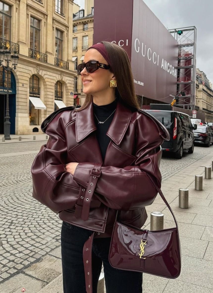 Также бордовый - это тот цвет, который отлично реагирует на сложные текстуры. То есть и кожа, замша, лаковая кожа, пушистый трикотаж будут красиво смотреться в бордовом цвете. И любые просто бордовые вещи будут хорошо сочетаться с вещами сложных текстур других оттенков.