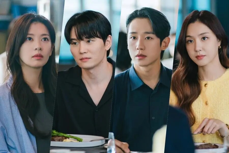 Приготовьтесь к неловкой встрече героев в следующем эпизоде дорамы «Сын маминой подруги»! «Сын маминой подруги» — новая романтическая комедия канала tvN, в которой Чон Со Мин играет Пэ Сок Рю, женщину, пытающуюся перезагрузить свою проблемную жизнь. Чон Хэ Ин играет Чхве Сын Хё, сына подруги ее мамы, которого она считает темной главой своей жизни. Смотрите также: Чон Хэ Ин и Чон Со Мин переживают перемены в отношениях в дораме «Сын маминой подруги» СПОЙЛЕРЫ В предыдущем эпизоде Пэ Сок Рю наконец узнала, что Чхве Сын Хё тайно питал к ней чувства со времен учебы в школе. На недавно выпущенных стиллах из следующего эпизода дорамы они случайно сталкиваются друг с другом, встречаясь со своими бывшими в одном ресторане. Чхве Сын Хё и его бывшая девушка Чан Тэ Хи (Со Джи Хе) сидят за столиком, который находится неподалеку от столика Пэ Сок Рю и ее бывшего жениха Сон Хён Джуна (Хан Джун У). Примечательно, что и Чхве Сын Хё, и Пэ Сок Рю, похоже, больше сосредоточены на том, что происходит за
