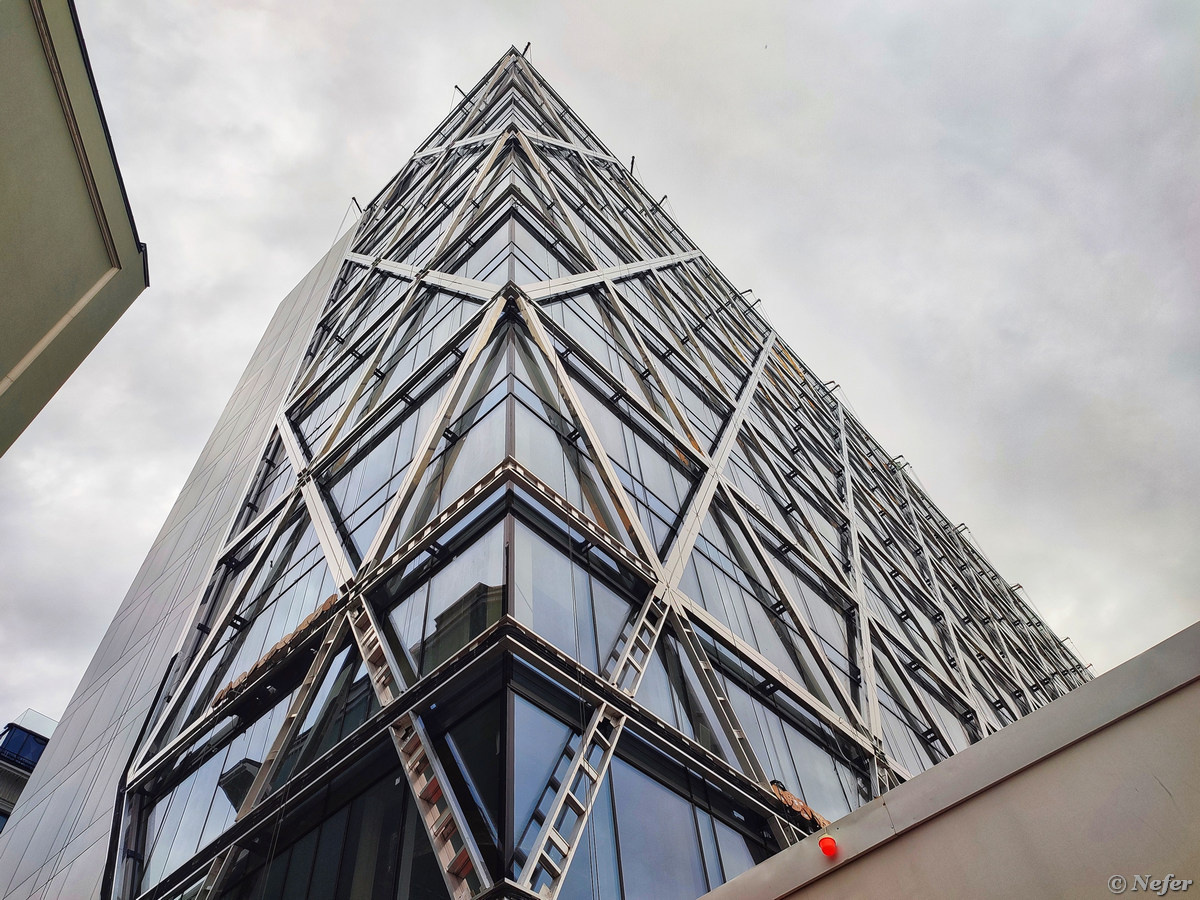 Иду я тут недавно в районе Арбата и вижу: то, что задумали на месте советского Дома Связи уже почти достроили. Это будет отель Cosmos, не путать с гостиницей "Космос" на проспекте Мира. Строительное ограждение еще не убрали, но название уже повесили. О проекте я публиковала материал Здесь был Дом Связи. В нем располагались почта, телеграф, телефон. Здание построено в 1965 году. По стилю оно перекликалось с жилыми домами на Новом Арбате. Свежепостроенный отель Cosmos имеет стеклянный фасад. Диагональная сетка не только декоративная, но и несущая конструкция. Коричневую стену соседнего здания ходят превратить в медиафасад. Авторы проекта считают, что это добавит "современности и блеска". Будет ли мешать жильцам огромный экран - дело десятое. Поворачиваю голову вправо, там еще одна стройка! Никитский, 6 - дом с колоннами восходящего ряда. Под впечатлением от увиденного я даже перешла через дорогу, чтобы изучить, что написано на заборе. А там написано, что мир без колонн был бы миром без а