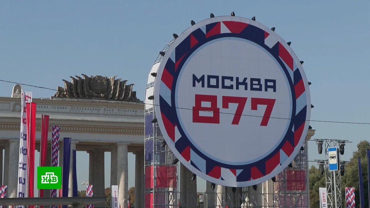 [ Смотреть видео на сайте НТВ ] Москве исполняется 877 лет. Специалисты комплекса городского хозяйства всю неделю приводили улицы в порядок: во всем блеске перед москвичами и гостями столицы предстали фонтаны, мосты, памятники, проспекты, парки и скверы. Настроение создают яркие флаги в цветах российского триколора, растяжки и конструкции, которые появились на улицах еще несколько дней назад, и, конечно, сами москвичи. Важная дата для Москвы — столице исполняется 877 лет. Традиционно День города приходится на первые выходные сентября. В этом году праздничные мероприятия пройдут в рамках завершения летнего фестивального сезона: их подготовили организаторы проекта «Лето в Москве. Все на улицу!», фестиваля «Усадьбы Москвы» и большого форума-фестиваля «Территория будущего. Москва 2030». По городу работает более 30 площадок, и у каждой — своя программа. Так, в парке «Зарядье» гостей ждут кино под открытым небом, арт-инсталляции, образовательные лекции, экскурсии, спектакли, яркие экспозиции
