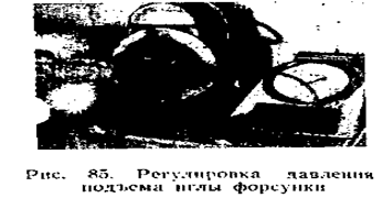 Регулировку рекомендуется производить на специальном приборе типа КП-1609А или аналогичном по конструкции. Давление подъема иглы регулируется винтом при снятом колпаке форсунки и отвернутой контргайке