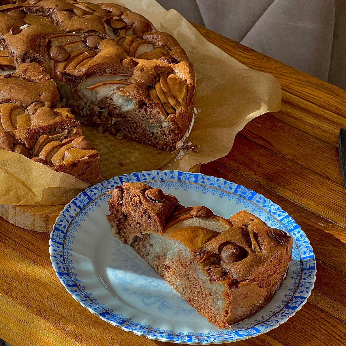 Осень самый сезон яблок и груш. У тех, кто имеет свой сад/огород, этих фруктов в избытке. Да и на прилавках магазинов/рынков, на них сейчас самая вкусная цена. Нужно ловить момент и делать вкуснейшую выпечку! Этот рецепт был небольшим экспериментом, который мне очень понравился. Не хотелось делать банальную шарлотку, душа жаждала попробовать что-то такое же простое, но с новыми оттенками. Важный нюанс: я положила сюда много груш и они были довольно сочные, был риск, что они не пропекутся. Но все удалось! Однако, советую не перебарщивать с фруктами😅 Конечно, этот вариант, можно приготовить и по классике-с яблоками. Но именно сочетание шоколада и груш, мне кажется максимально идеальным. Ингредиенты(на форму 26-28см, на форму 18-20см делите ингредиенты на два): Яйца-6шт (лучше всего выбирать категории-С1, у меня в этот раз, были мелкие- С2 и тесто получилось густоватым) Мука-240гр Разрыхлитель-2ч.л. Какао-30гр (если любите более шоколадно, то можно добавить и 50гр, но тогда уменьшите