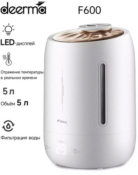 - Deerma Humidifier White DEM-F600: Бюджетный вариант с большим баком для воды и функцией ароматерапии. Проверить, где дешевле всего ==>