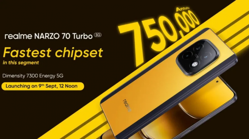 Realme Narzo 70 Turbo это стильный и мощный смартфон для геймеров с быстрым процессором, ярким дизайном и доступной ценой. Realme, известный производитель смартфонов, готовится к запуску нового устройства из своей популярной серии Narzo. Narzo 70 Turbo, который будет представлен 9 сентября, обещает стать настоящим хитом среди геймеров и фанатов бренда. Компания уже выпустила несколько тизеров, намекая на ключевые характеристики нового смартфона, и вот что нам известно. Narzo 70 Turbo будет оснащен процессором MediaTek Dimensity 7300 Energy 5G, который, по заявлению Realme, является самым быстрым в своем сегменте. Он демонстрирует впечатляющие результаты в бенчмарке AnTuTu, набирая более 750 000 баллов, что говорит о его высокой производительности. Дизайн Narzo 70 Turbo также подчеркивает его "спортивный" характер. Задняя панель с яркой желтой полосой, идущей по центру, напоминает болид Формулы-1. Модуль камеры, расположенный в этой полосе, имеет квадратную форму с приподнятыми краями,