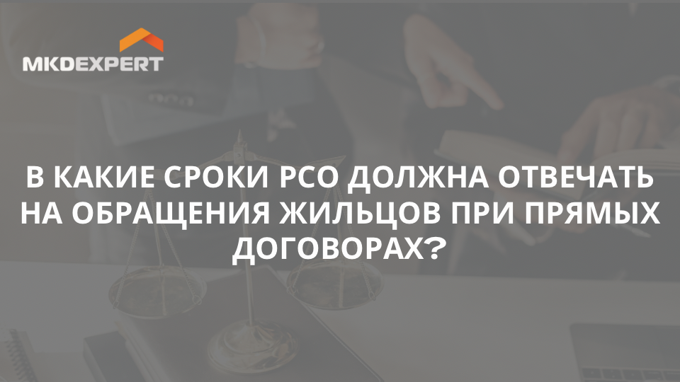 В многоквартирном доме собственники заключили прямые договоры. Читатель интересуется, в какие сроки РСО должна отвечать на обращения жильцов. Разбираемся в статье https://mkdexpert.com/publikatsii/v-kakie-sroki-rso-dolzhna-otvechat-na-obrashcheniya-zhiltsov-pri-pryamykh-dogovorakh/