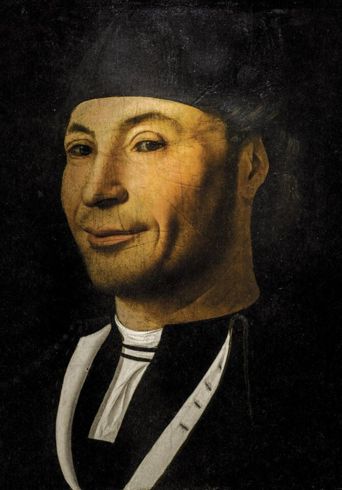 Рецепт да Мессины до невозможности прост и виртуозен - точка зрения чуть снизу, то есть портретируемые, в том числе и наш сегодняшний друг, глядят на нас свысока.