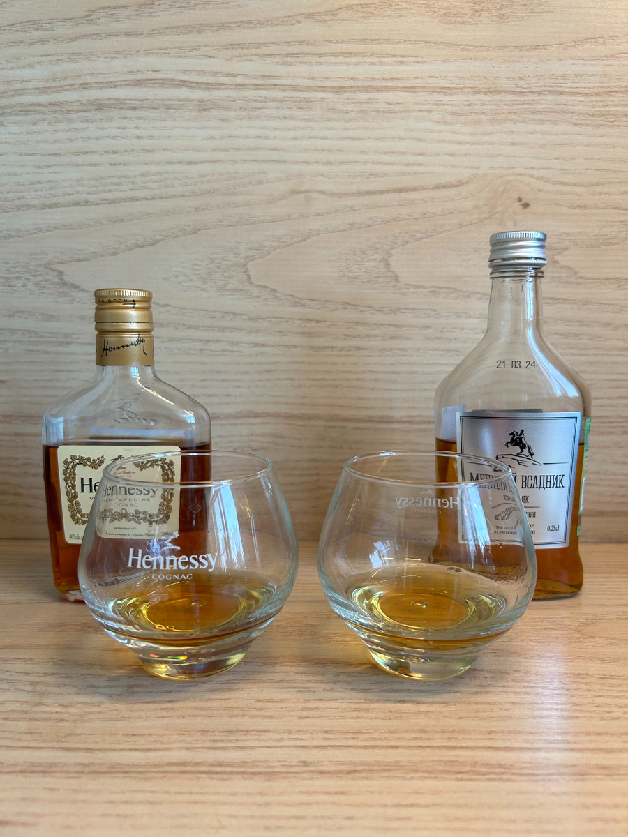 Продолжаем сравнительные опыты. В этот раз в тесте «почти по науке» сойдутся Хеннеси на минималках и минимальный Медный питерский всадник. Итак подопытные: Медный Всадник четырехлетний и Hennessy VS С одной стороны напитки не сравнимы, но мои друзья из Санкт-Петербурга считают, что «наше» не спасует перед именитым французом. Так что я просто проверял эту гипотезу. Ниже привожу свои ощущения, выводы пусть каждый делает самостоятельно и по своим критериям. Первый тур: Выдержка. У напитков можно считать одинаковой. Цена. Тяжело сравнивать – отечественная продукция в районе МРЦ, Француз – верх рынка в категории VS. Цвет напитков – Hennessy темнее, но незначительно . Вязкость. У обоих напитков примерно одинаковая. Замечание, все напитки открыты порядка недели, тест проводился в фирменных шарах Hennessy, перед опробованием дал напиткам подышать в бокале полчаса. Enjoy and be happy. Now everyone knows what brandy&cognac is. Понравилось? Тогда мышью тыц и подписываемся.
