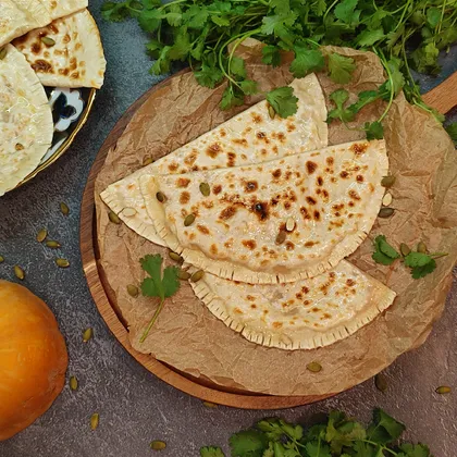 В сезон тыквы можно готовить из этого овоща все блюда дня на завтрак, обед и ужин. Каши, рагу, супы, десерты, пироги и многие другие блюда по замечательным рецептам наших авторов специально для вас. Смотреть рецепты https://ovkuse.ru/recipes/tykva Мука 500 г Кипяток 250 мл Соль 2/3 ч. л. Тыква (филе) 500 г Лук 1 шт. Кориандр 1/2 ч. л. Зира 1 ч. л. Перец черный 1/2-1 ч. л. Соль 1/2 ч. л. (по вкусу) Сливочное масло 30 г + для смазывания готовых кутабов