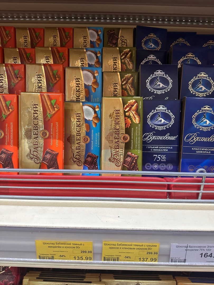 Нет, я нормально отношусь к тому, что шоколадка из эксклюзивной коллекции с кокосом или грецким орехом стоит на 35 рублей дороже, чем бессмертная классика.