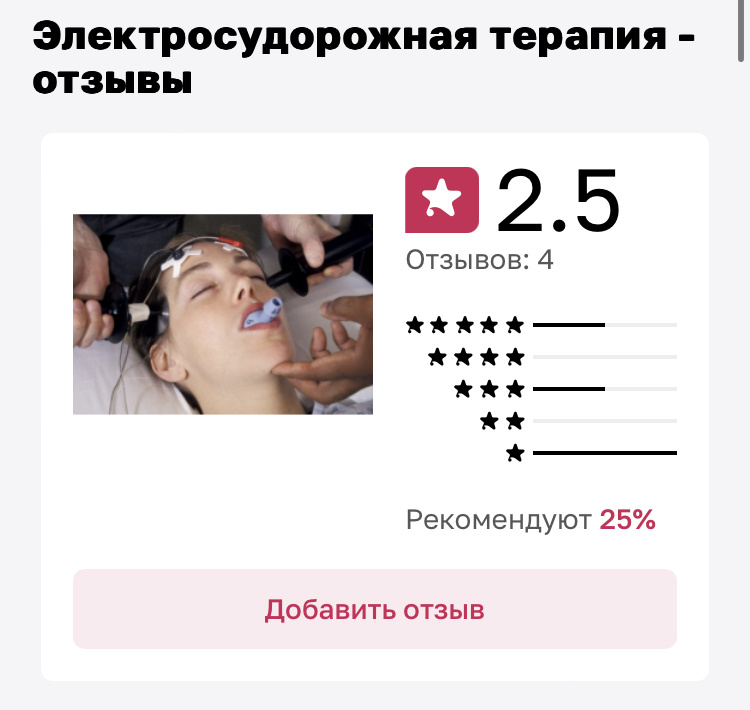 «В России с 1 января 2025 года вступают новые клинические рекомендации, одна из которых — «электросудорожная терапия». Электрошок будет применяться в случаях, когда таблетки почти не помогают, например, при параноидальном, тревожном, шизоидном, истерическом и других видах расстройства личности.» Электрошоковая или же электросудорожная терапия- особый метод лечения, при котором большой судорожный припадок вызывается пропусканием электрического тока через головной мозг пациента с целью достижения лечебного эффекта в случае когда лекарства не наносят эффекта. Зачем она и что лечит? Используется данная терапия для лечения депрессий, тревожных расстройств, синдрома биполярного аффективного расстройства,шизофрении и др., лишь для тех пациентов, которые не получают облегчения либо получают недостаточное облегчение от других методов лечения, таких как психотерапия и психотропные лекарства. В зависимости от особенностей течения заболевания требуется где-то от 2 до 20 сеансов электрошоковой тера