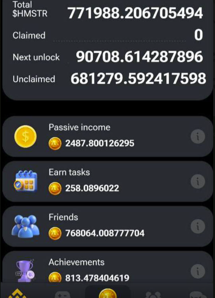 Добрый день! В одном из начальных постов я касался близкого знакомого, который меня самым первым пригласил в проект. Я тогда отказался. Но чуть позже всё-равно стал его рефералом, начал играть в хомяка и вот он, день распределения монеток $HMSTR. Я написал пост про то, сколько мне принёс хомяк монеток, но когда увидел сколько он заработал, это конечно мамма миа итальяно писсуаро. Немного про моего знакомого. Достаточно давно лидер подразделения по сетевому бизнесу, мерседесы получал, путешествовал и т.п. За это время набралось огромное количество людей, которые с ним взаимодействовали так или иначе. Записывали его в телефон, писали ему в телеграме. А подписка телеграма позволяет выкладывать истории, которые видят другие пользователи, у которых вы есть в списке контактов. И таким образом он собрал аудиторию людей, которые знают его и доверяют ему. Он просто регулярно выкладывает в истории различные интересные проекты и подтягивает большое количество людей. Прошу прощения за