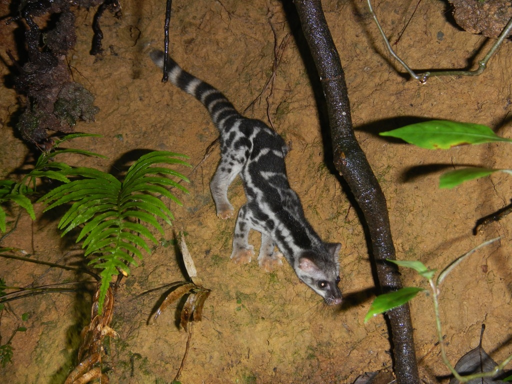 Что было бы, перестань коты эволюционировать? Возможно, сейчас у вас дома сидело бы вот ЭТО! Познакомьтесь, азиатский линзанг. Именно так выглядели предки привычных нам Мурзиков и Барсиков! Змеекот! Змеекот! Единственный в мире малыш змеекот! С виду азиатский линзанг больше похож на меховую змею с лапками. Длинная вытянутая тушка, толстый хвостище, узкая хитрая морда, короткие лапки. При длине в метр весит крошка 500-700 граммов. Из привычного кошачьего в звере лишь леопардовая шкурка и пышные усы. Существуют два вида азиатских линзангов: полосатый и пятнистый. На этом фото, например, полосатый. На фото ниже — пятнистый. В буйных джунглях Юго-Восточной Азии разглядеть эту крошку почти невозможно. Вот учёные особо и не разглядывали. Заметили, что линзанг похож на генет, циветт, мусангов — и приписали их в семейство виверровых. Справедливости ради, все эти звери действительно похожи друг на друга. На этом фото азиатский линзанг. На следующих — виды животных, которые до недавнего времени