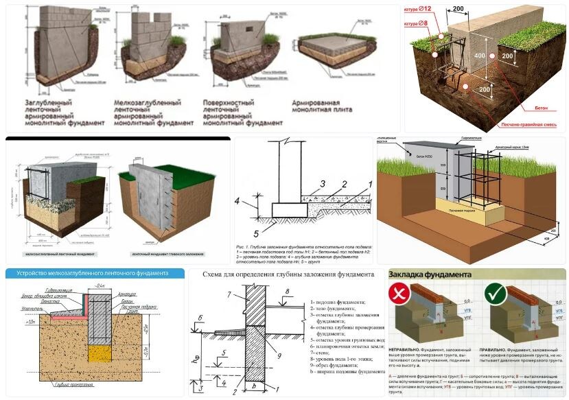 Планирую строить свой дом, планирую два этажа. Вроде план накидали, фундамент хотим закладывать сами, а вот глубину никак рассчитать не можем. Фундамент будем делать ленточный. Подскажите пожалуйста какая должна быть глубина закладки фундамента для двухэтажного дома? Ленточный фундамент применяют на стройплощадке с неоднородными грунтами, которые могут просесть. Глубина заложения фундамента для двухэтажного дома без подвала составляет 0,8-1,0 м. Превышение средней глубины заложения фундамента возможно, если грунт сильно оседает. Ширина ленточного фундамента под наружные стены зависит от грунта, но должна быть не менее 40 см, оптимально — 50 см, т. е. на 10 см больше, чем толщина стены.