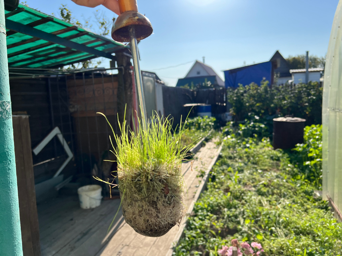 Такое вот неожиданное дизайнерское решение🤦♀️ Мини-газон, креативная клумба. Точнее, выросла эта трава там сама. И моя дачница-мама, владелица чего чудесного арт-объекта, даже не видела, что тут у нее за сараем, так сказать, жизнь зародилась!