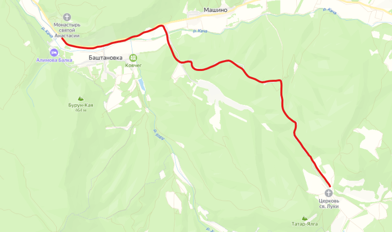 На карте показала путь от Бисерного храма и Качи-Кальон до деревни Лаки: