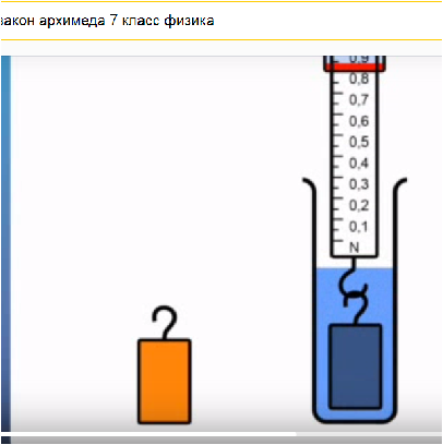 - Для случая, когда плотность тела погружённого в воду меньше плотности воды, величина архимедовой силы всегда равна величине веса воды, вытесненного этим телом, при условии: если первоначальный уровень воды в сосуде после погружения тела не изменяется.