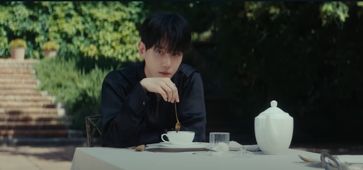 Этот Айдол идеален во всём - танцы, вокал. А в этом клипе открылись еще и его актёрские способности. Так, ладно, перейдём к сюжету. Что делать, когда в вампире бушует романтика больше, чем жажда чужой крови. И это самый добрый вампир, которого я видела на экране. BAEKHYUN. Песня Pineapple Slice. Клип вышел 6 сентября. Старый замок. Капля крови с пола поднимается вверх. В воздухе летают летучие мыши. Люди сторонятся их, паникуют. А в центре - король торжества Бекхён, абсолютно спокоен. Потом показан холодильник только с красными продуктами. Следующий кадр. Бекхён находится в саду, пьёт чёрный кофе. При этом показывает свои способности - двигает к себе сахар силой мысли, кажется. А на тарелке остаётся яблоко, на котором чётко виден укус от клыков. Дальше Вампир идёт в свою комнату, приводит себя в порядок. Но сначала закрывает шторки силой мысли, конечно. Потом чистит зубки, показав клычки своему отражению. Что даже зеркало трескается от восторга. Здесь пиджак уже готовится вылетет