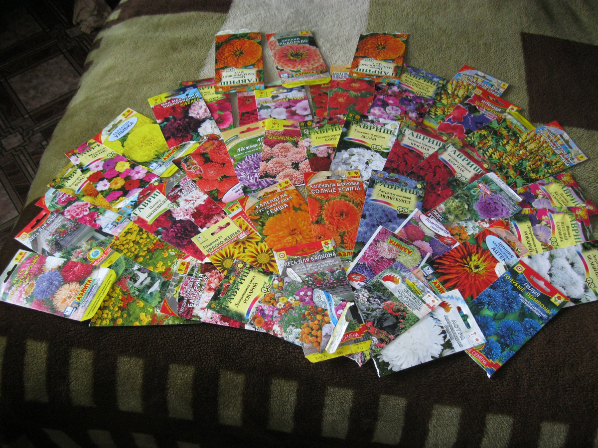 Ну что поехали))). И так.. сад отвоевали, вскопали. Осталось дело за малым вырастить красивучий сад. Даже мысли не возникало что в инете можно что-то узнать про выращивание цветов. Нужно же семена где-то купить. С удивлением узнала что есть целые магазины для садоводов. Пришла, увидела все и обалдела….Как же я пойму что мне надо.. Передо мной ряды с пакетиками семян. Все яркие, красивые. Стала читать что на пакетиках написано…А лицо у меня при этом такое вумное вумное)) что ко мне аж стали подходить совета спрашивать)) Честно отвечала что я вообще первый раз сюда пришла)) В итоге проснулся великий хочун и гора пакетиков переместилась ко мне домой. Разложила на кровати, сижу любуюсь.. Показала девочкам вышивальщицам они ахнули)) говорят таким количеством семян можно не только мой садик засадить, но и пол города. И тут пришла подмога))) бабушка, которая из цветов сама выращивала только бархатцы и то сыпя в землю. Но мы решили сеять рассадой. В ход пошли все плошки, тазы и тому подобное.