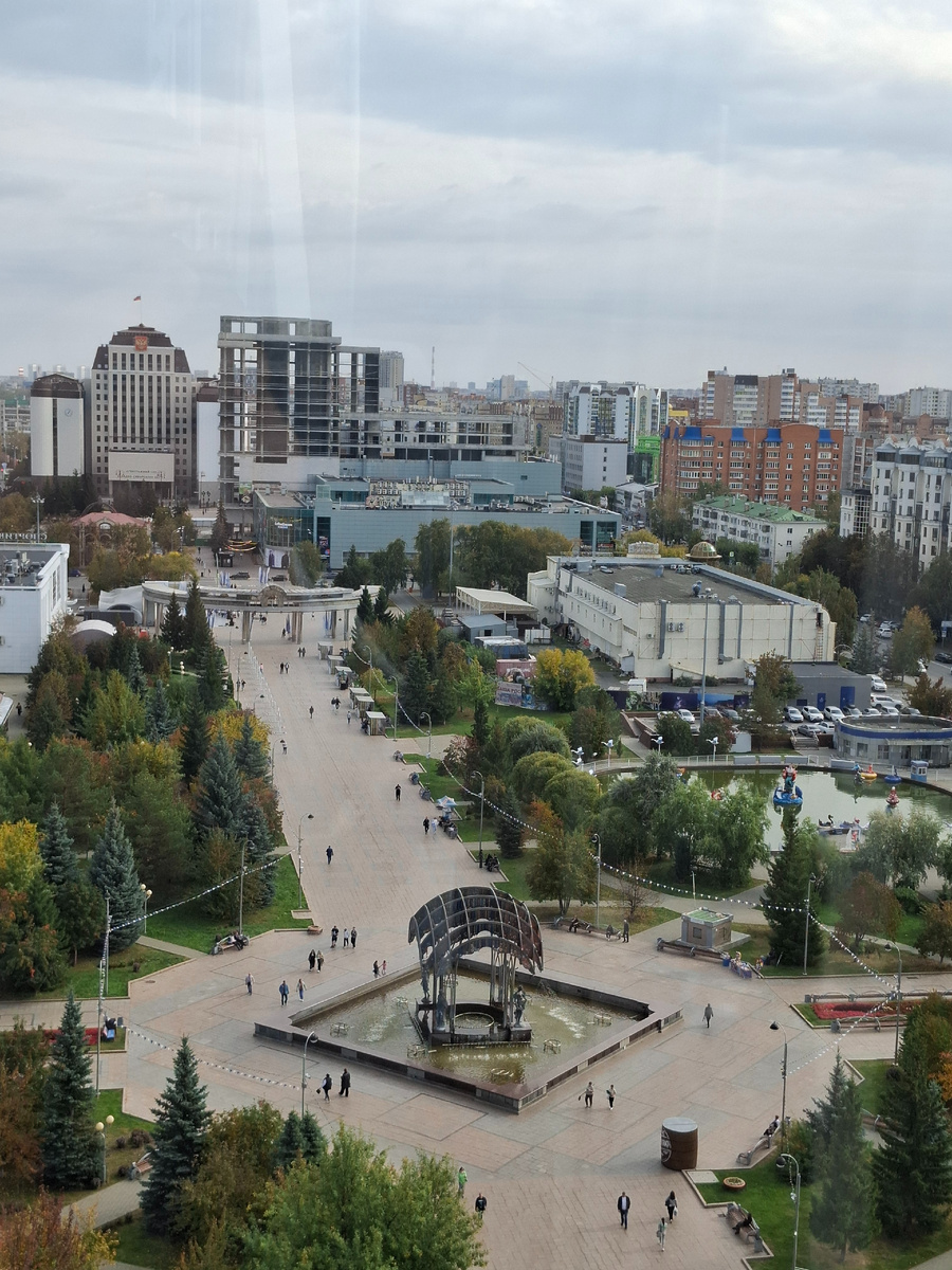 Приветствую читающих. Стоит заметить, что сами по себе мы можем редко сменить маршрут или изменить тему прогулки. У меня сенодня получилось, но несамостоятельно естестественно, а следуя интересам внука. Раз уж я попала в Тюмень надо сьездить забрать наши с подругой гончарные изделия, они уже готовы к пользованию, высушены,покрыты глазурью и обожжены. Позвала с собой внука редко у него свободное время для меня- учеба, кружки, секции. Время до обеда в гончарной студии осталось не много у нас выбор или мы торопимся и можем опоздать или не торопимся . Мы решили не торопиться, временем располагали и первое согласованное мероприятие- колесо обозрения. Как обожаю я эти виды с высоты, любой высоты. Сразу начинаешь выискивать знакомые места. Вон виднеется мост влюбленных, там купола монастыря, Спасская церковь во всей красе. Здание цирка, с синим куполом и огромным серебристым шаром Теплый осенний денек, " Вкусно - и точка" не обошли. Сижу вспоминаю как внук назвал это заведение, по мое