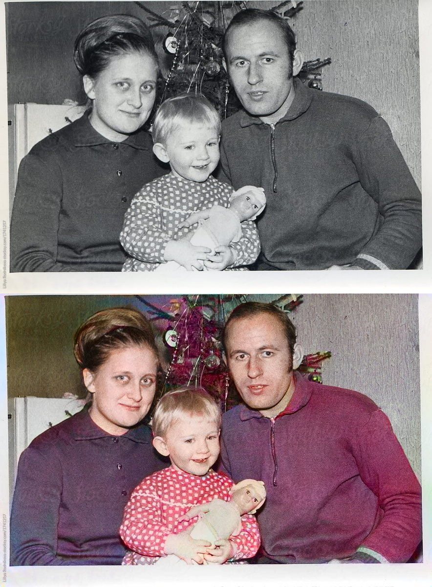 Добавьте цвета старым семейным портретам. Таким образом, связь с прошлыми поколениями становится проще и придает воспоминаниям большую сентиментальную ценность.