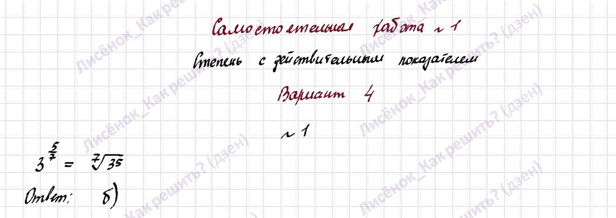 Самостоятельная работа № 1.1. Степень с действительным показателем
