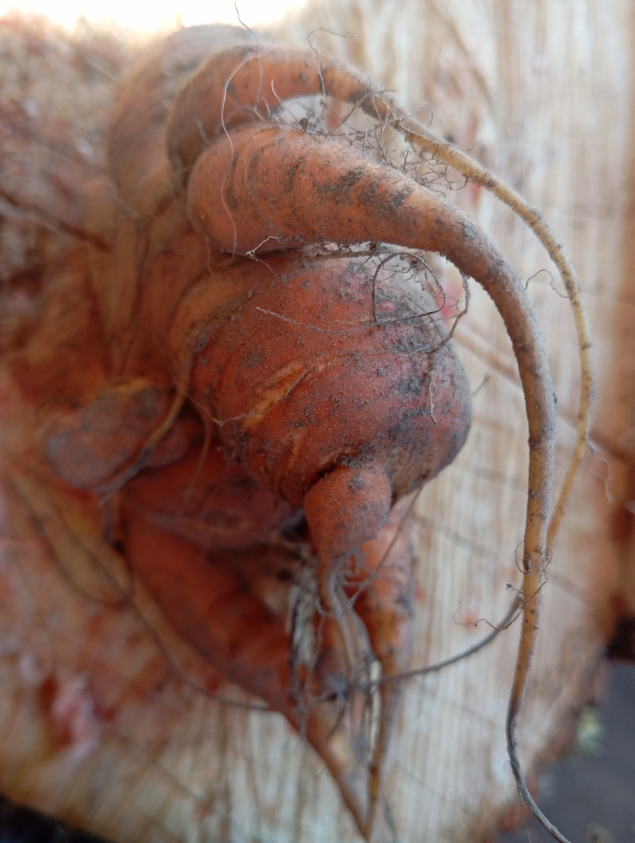 Огородный тест Роршаха) Морковка выше - точно какой-то монстр. А это нечто с двумя толстыми лапами, жирным хвостиком и клювом) Однозначно лапка! Осьминожка! Попа с хвостиком! Тут, думается, подписи не требуется)) Ну просто модельные ножки! Или эти постройнее будут? А что видите Вы?