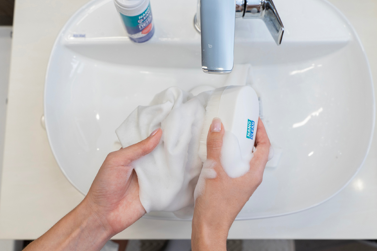 С подходящей материалу щёткой любое загрязнение, даже самое сложное, легко растворится благодаря свойствам универсального очистителя. Наночастицы в составе средства проникают в грязь, растворяя её изнутри и отталкивая от материала. А щётки аккуратно уберут остатки загрязнения и средства, не оставляя ни следа. Важно! Любые «домашние способы