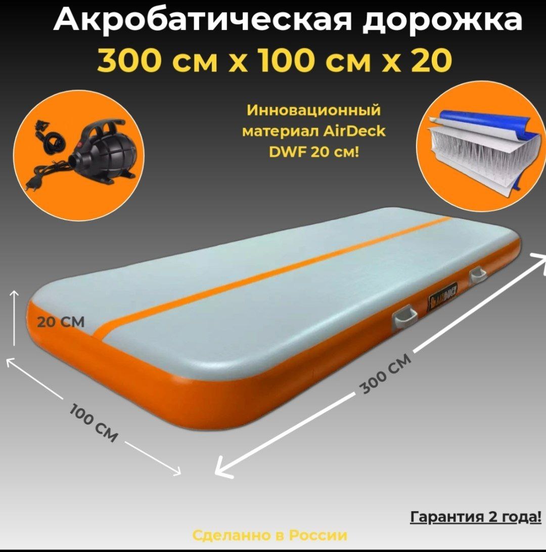 Надувные акробатические дорожки представляют собой специальные надувные поверхности, изготовленные из прочных синтетических материалов. Они используются для: Надувная дорожка обладает рядом преимуществ, таких как доступная цена, высокие прочные и эксплуатационные характеристики, высокая износостойкость и декоративность. Надувные акробатические дорожки и ковры изготавливаются из уникального материала, который при надувании образует абсолютно ровную поверхность с высокой прыгучестью. Они представляют собой надувные маты прямоугольной или квадратной формы, толщиной полотна более 20 см с габаритами до 30 кв. м. Надувные акробатические дорожки и ковры многофункциональны и могут использоваться как для отработки акробатических связок, так и в качестве страховочной платформы приземления или для улучшения толчка при выполнении многоступенчатых акробатических комбинаций. Но в чем их отличие? Преимущества надувной акробатической дорожки: Ковры для гимнастики более жесткие, а, следовательно, боле