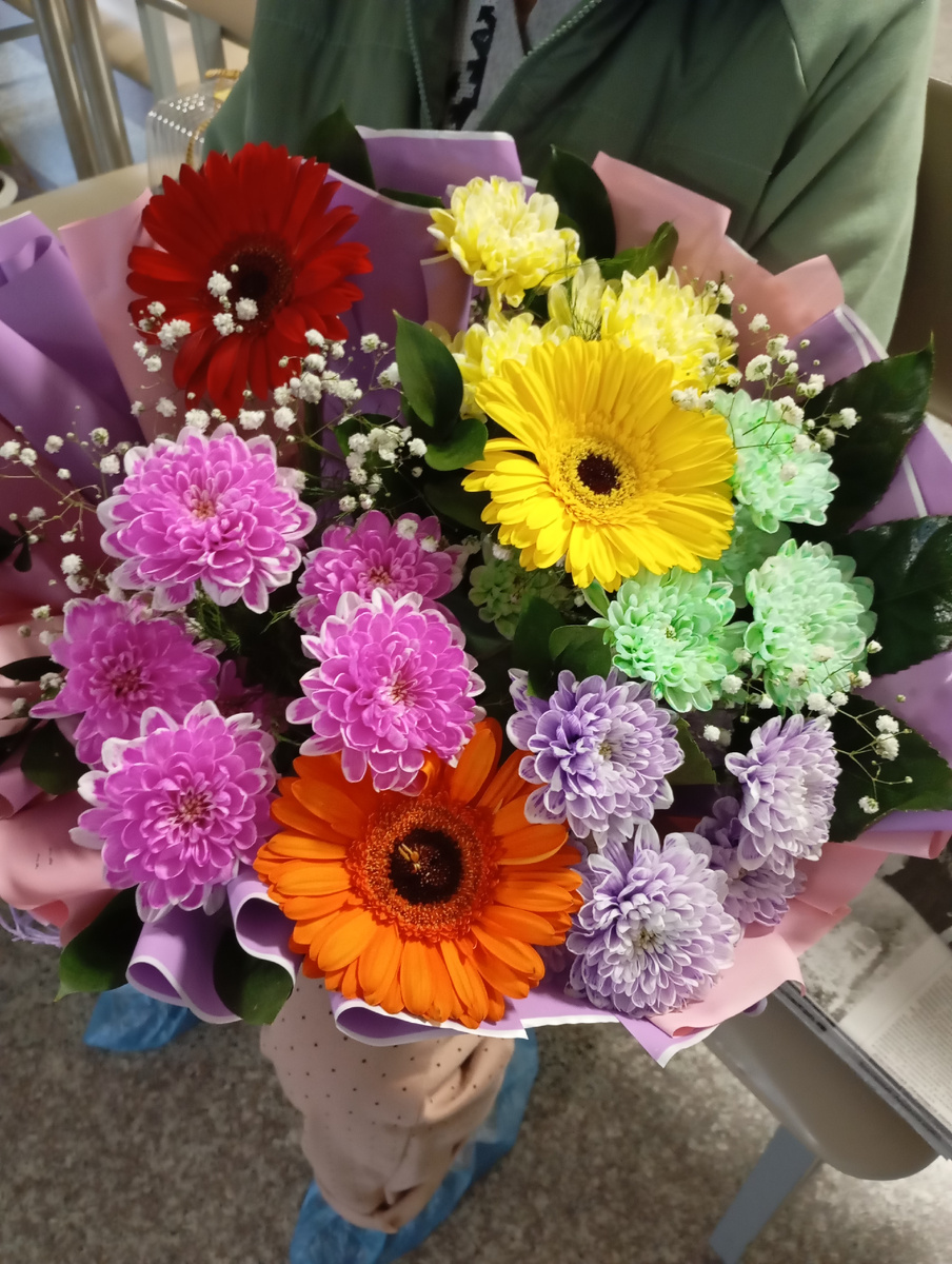 Спустившись к выходу из лечебного корпуса я сразу обратила внимание на небольшую группу людей собравшихся вокруг бабушки. В руках у нее был шикарный букет. Моя первая реакция была: