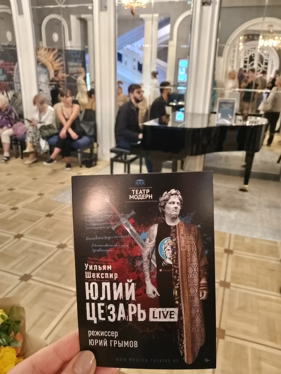 🌠 Театр "МОДЕРН" это всегда красиво, статусно, зрелищно, а постановки Юрия Грымова креативны, неординарны, оригинальны. 🔹Итак, спектакль "Юлий Цезарь. LIVE". 🔹Как и четыре столетия спустя, пьеса Уильяма Шекспира продолжает оставаться актуальной — все те же политические интриги и мастерство управления общественным мнением.Так называемый "Эффект толпы" демонстрируется в полной мере и раскрывается "во всей красе". 💠В спектакле мы видим, как история может измениться, если людские слабости и пороки, такие, как гордыня, жажда власти и денег, осуждение, нарциссизм возьмут верх, подчеркивая, что народ может стать марионеткой в руках заговорщиков и лишиться собственного мнения и воли. Актуально? -Конечно, да! 💎Нельзя не отметить великолепную, целостную, органичную актёрскую работу каждого героя. Убедительны монологи героев. Кассий (з.а. РФ Игорь Яцко) искусно настраивает своего верного друга Брута (Александр Толмачев ) и Цаску ( Юрий Анпилогов) на свержение Цезаря (Пё