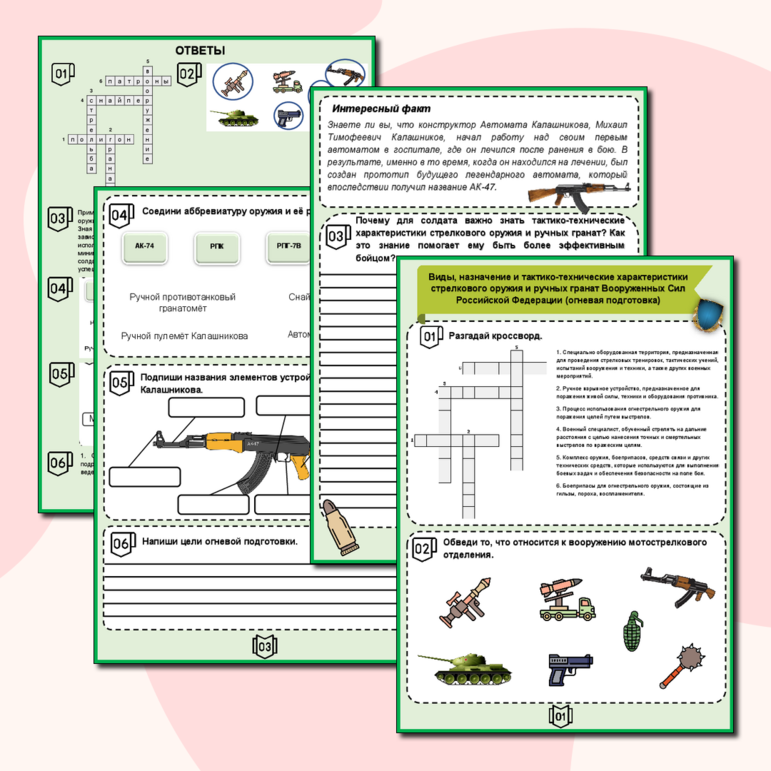 Рабочий лист и конспект урока по ОБЗР (основы безопасности и защиты Родины) для 5-9 классов на тему: Виды, назначение и тактико-технические характеристики стрелкового оружия и ручных гранат Вооруженных Сил Российской Федерации (огневая подготовка)