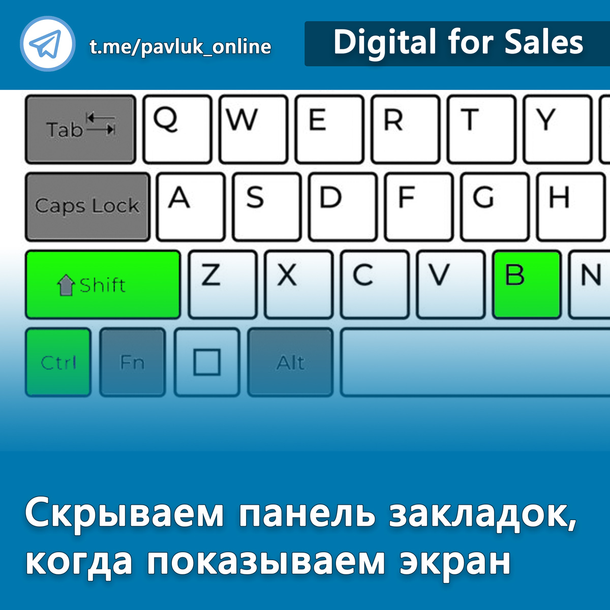 Во время созвонов часто надо пошарить экран, а “светить” перед публикой панель закладок (мало ли какие там сайты) не хочется. Поэтому привычное дело – показать только одну вкладку браузера. Но на этом приключения могут не заканчиваться, а только начинаться… Например, у меня – в порядке вещей, когда “шарю” описание какой-то задачи, поставленной в CRM. В ее описании может содержаться ссылка на гуглодоковский мануал либо какую-нибудь гуглотабличку. Два клика – и вот у меня открылось еще две вкладки в браузере. И я перехожу туда, начинаю что-то комментировать… Пока не вспоминаю, что вообще-то продолжаю показывать собравшимся первую вкладку – с задачей. Бывает у вас такое? И тогда обычно закрываешь трансляцию вообще, затем снова запускаешь, но уже с другой вкладкой. А потом все то же самое, но с третьей… И все это – только из-за того, что не хочется показывать посторонним свою панель закладок. Несколько раз я заранее отключал ее показ, добираясь до соответствующих настроек через “три точки”