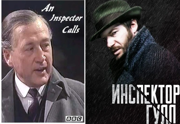 Английская версия по форме практически неотличима от театрального спектакля, заснятого для телевидения. Всё действие сосредоточено в одной комнате, точнее – в зале большого особняка (или замка) с камином и длинным обеденным столом, за которым застигнуты члены семьи фабриканта Берлинга. Декорация, равно пригодная для произведений Диккенса, Конан Дойла, Оскара Уайльда и ещё десятка авторов. Джентльмены в одинаковых смокингах, дамы в эдвардианских платьях. Неудивительно, ведь действие, в точности, как в пьесе, вершится в начале двадцатого века. В «старой доброй Англии» всё по-прежнему, и только явившийся в сером плаще инспектор портит обществу вечер.