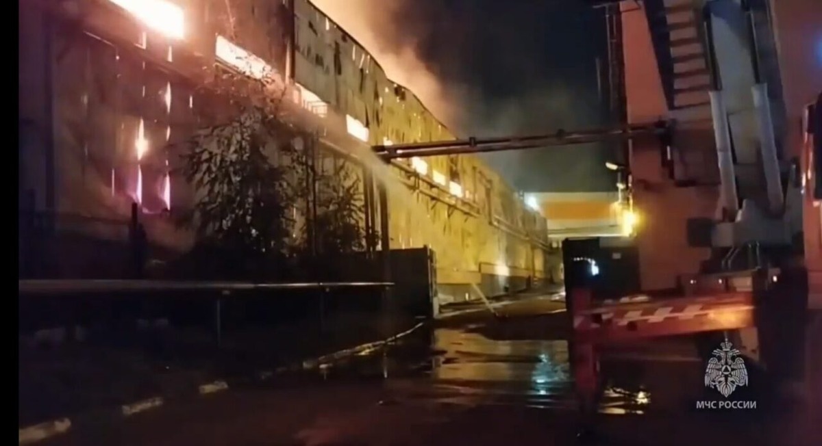 Сотрудники МЧС России локализовали возгорание на площади 4 200 квадратных метров в подмосковной деревне Апаринки в пятницу. На кадрах спасатели тушат охваченное огнем здание склада из брандспойтов с применением пожарной автолестницы. В ведомстве сообщили, что в результате пожара частично обрушилась кровля. В ликвидации задействованы 65 человек и 22 единицы техники. Позже в пресс-службе МЧС добавили, что специалисты не допустили перехода огня на соседние здания и ликвидировали открытое горение. На момент публикации сведений о пострадавших не поступало. ИСТОЧНИК : МЧС России