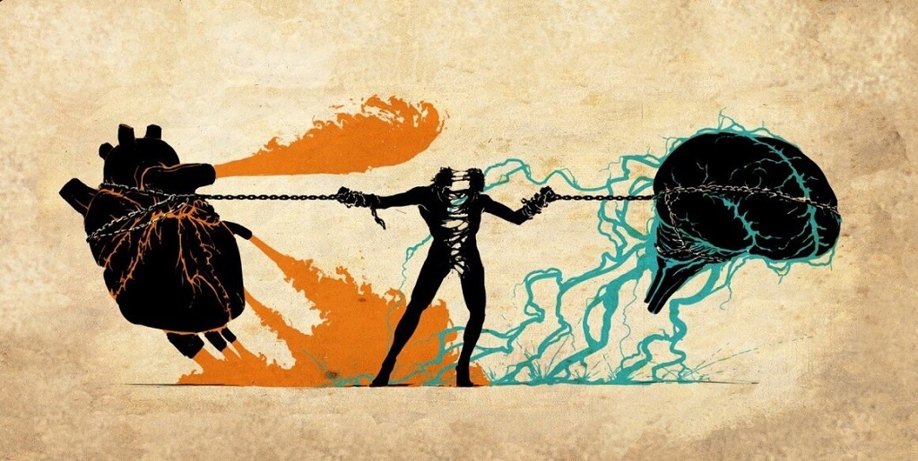 Есть один интересный вопрос. Если разум и чувства две неотъемлемые и равно важные части человека, если мужчина и женщина две половины одного целостного человека и только через двух продолжается жизнь, если вся Вселенная — это духо-материя или энергия, приводимая в движение разумом, то откуда в человеке берется противоречие и борьба между этими частями, если жизнь — это просто их совместный танец: разум (мужчина) ведёт, чувства (женщина) ведутся? Почему в природе от работы этого закона противоречия нет, а в человеке есть? Почему человеческий ум порой отказывается считаться с чувствами до тех пор, пока они не доведут его до депрессии, болезни или суицида? Почему между мужчиной и женщиной война, а не танец?