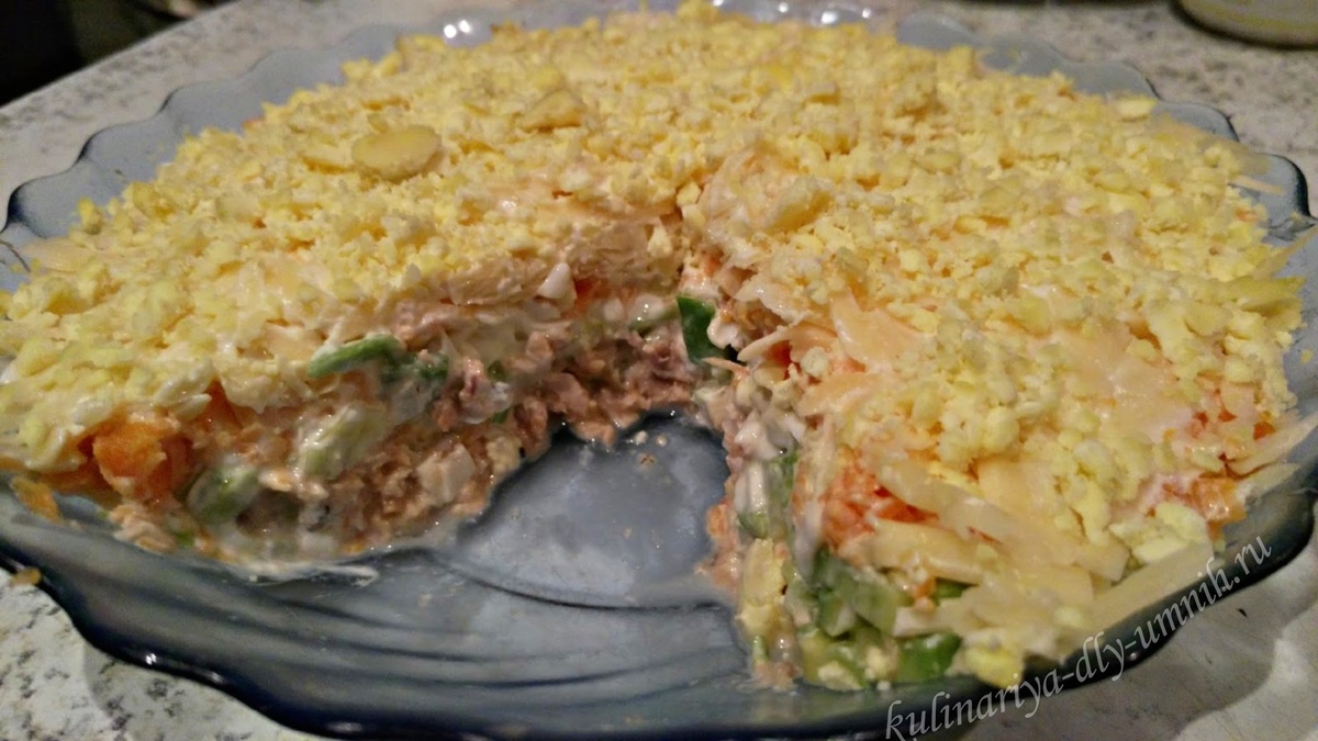 Любители слоеных салатиков с рыбными консервами – не проходите мимо! Для вас нежный, сочный, тающий во рту салатик с консервированной горбушей, хорошо подходящий для повседневного меню. Салат достаточно бюджетный и несложный в приготовлении. Мой рекомендасьён 🫶👌 Нам потребуется: Консерв. горбуша – 1 банка, 240 г, сыр твердый – 200 г, авокадо – 1 шт., яйца – 2 шт., 🥕 отварная немаленькая – 1 шт., лук зеленый – полпучка, грамм 50, майонез, соль. Приготовление: Сначала подготовим ингредиенты. Горбушу достаньте из банки, разомните, при необходимости подлейте сока из баночки. Выложите в салатник первым слоем и смажьте майонезом. Посыпьте горбушу мелко порезанным луком. Вторым слоем уложите авокадо, порезанный мелкими кусочками. Предварительно необходимо очистить авокадо от шкурки. Смазываем майонезом. Следующий слой – тертые яичные белки, присолите их и также смажьте майонезом. Следующий слой – натертая на средней терке морковь, также смазываем ее майонезом. На морковь насыпьте слой