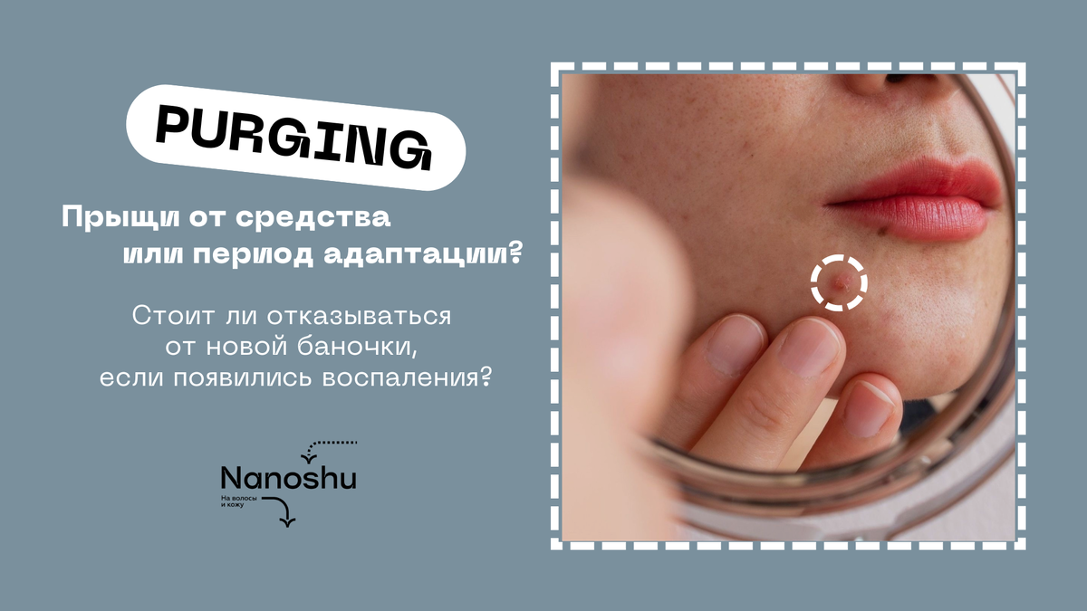 Мы привыкли думать, что воспаления = негативная реакция кожи, а значит от средства нужно срочно отказаться! Но наш организм устроен гораздо сложнее В косметологии этот процесс называется PURGING (чистка). Он сопровождается ростом воспалений, которые сигнализируют о том, что ваша кожа приспосабливается к новому продукту и в конечном счете он улучшит состояние вашей кожи. Причиной «чистки» могут стать средства, содержащие активные ингредиенты, например: Процесс может затянуться на месяц — время, которое необходимо для обновления только верхнего рогового слоя (иногда цикл обновления может быть более длительным). Если ваша кожа не поправляется уже в течение 1,5-2 месяцев, то стоит прекратить использование провоцирующего средства. Поэтому, если в первое время после внедрения новых средств у вас появились воспаления — не стоит сразу же от него отказываться! Вашей коже нужно время для адаптации и совсем скоро она обретет чистый и здоровый вид! ♥