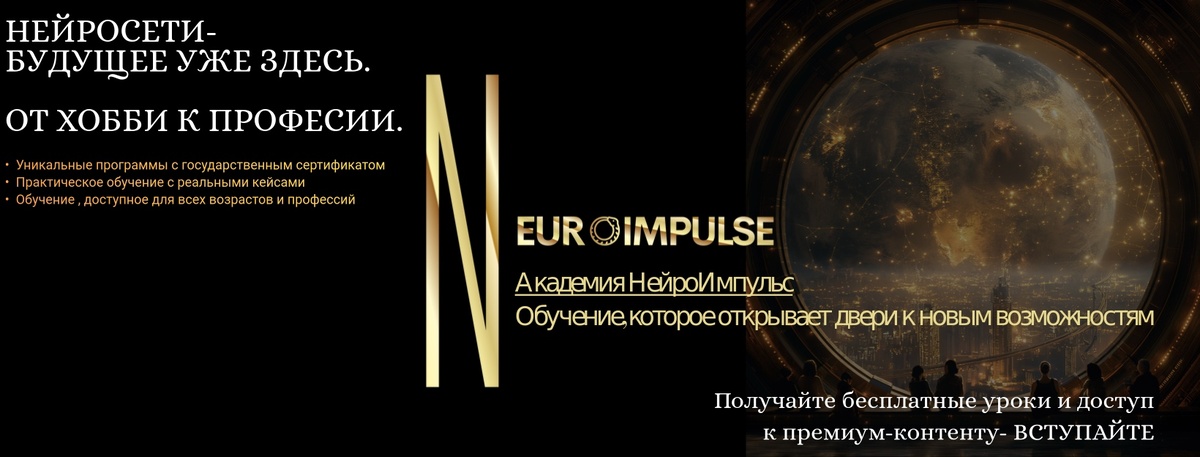Присоединяйтесь к "Академии НейроИмпульс", и вместе мы откроем для вас мир нейросетей — простой, понятный и, главное, доступный. Пусть этот шаг станет началом вашего пути к новым возможностям и успеху!