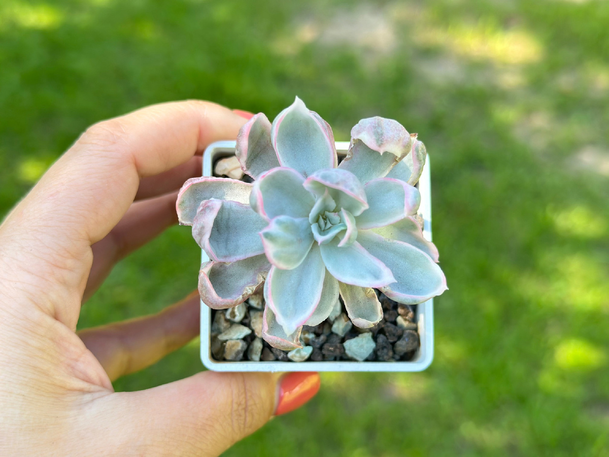 Эта эхеверия прибыла ко мне из Китая в качестве подарка к основному заказу. Название продавец не указал. Розетка компактная, листья плотные, мясистые, с острыми краями. Есть небольшой налёт.
