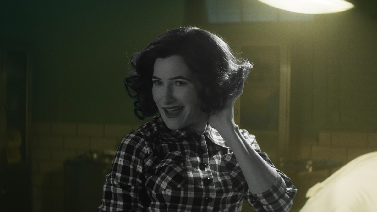 Первая серия стилизована под детективный сериал в приглушенных тонах. Колкий детектив (Кэтрин Хан) расследует загадочное убийство в сонном осеннем городке. Название вымышленного шоу внутри шоу «Агнесс из Уэствью» явно отсылает к «Мейр из Исттауна», проникновенная гитарная баллада напоминает о титрах «Настоящего детектива», а надпись «Основано на датском сериале „Вандавиждисен“» (WandaVisdysen) высмеивает моду на скандинавские нуары. К счастью, эта пародия (действительно смешная!) не затягивается надолго и разрушается еще до конца первой серии, иначе это было бы повторением формулы «Ванды/Вижна», где каждый эпизод мимикрировал под ситкомы определенной эпохи.